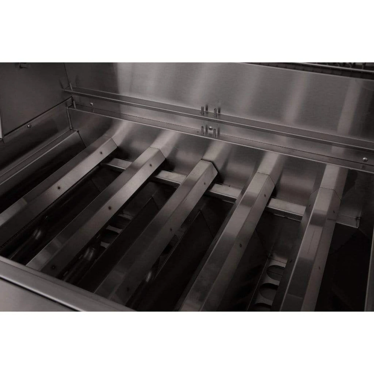 - Dual Fuel Grill System: Designed with (8) 22,000 BTU gas burners and solid fuel baskets for charcoal, pellets, or wood