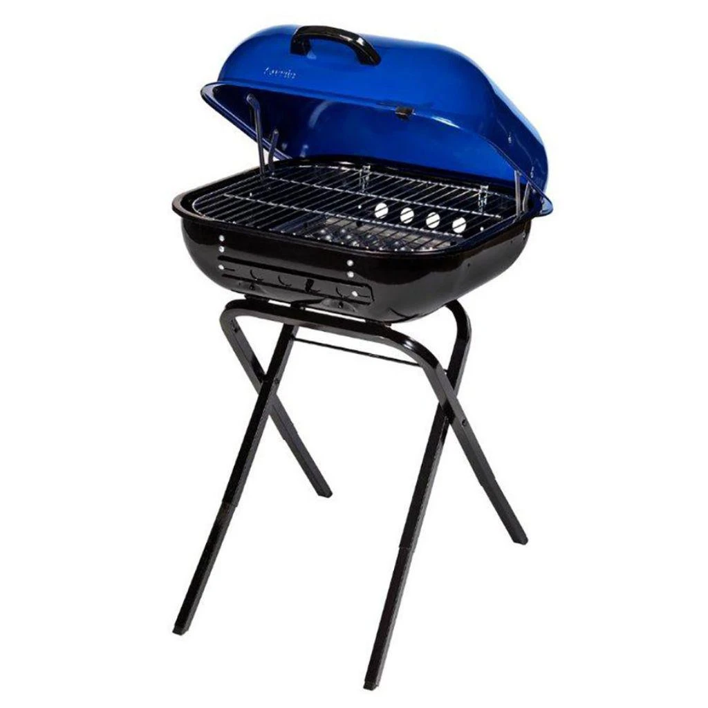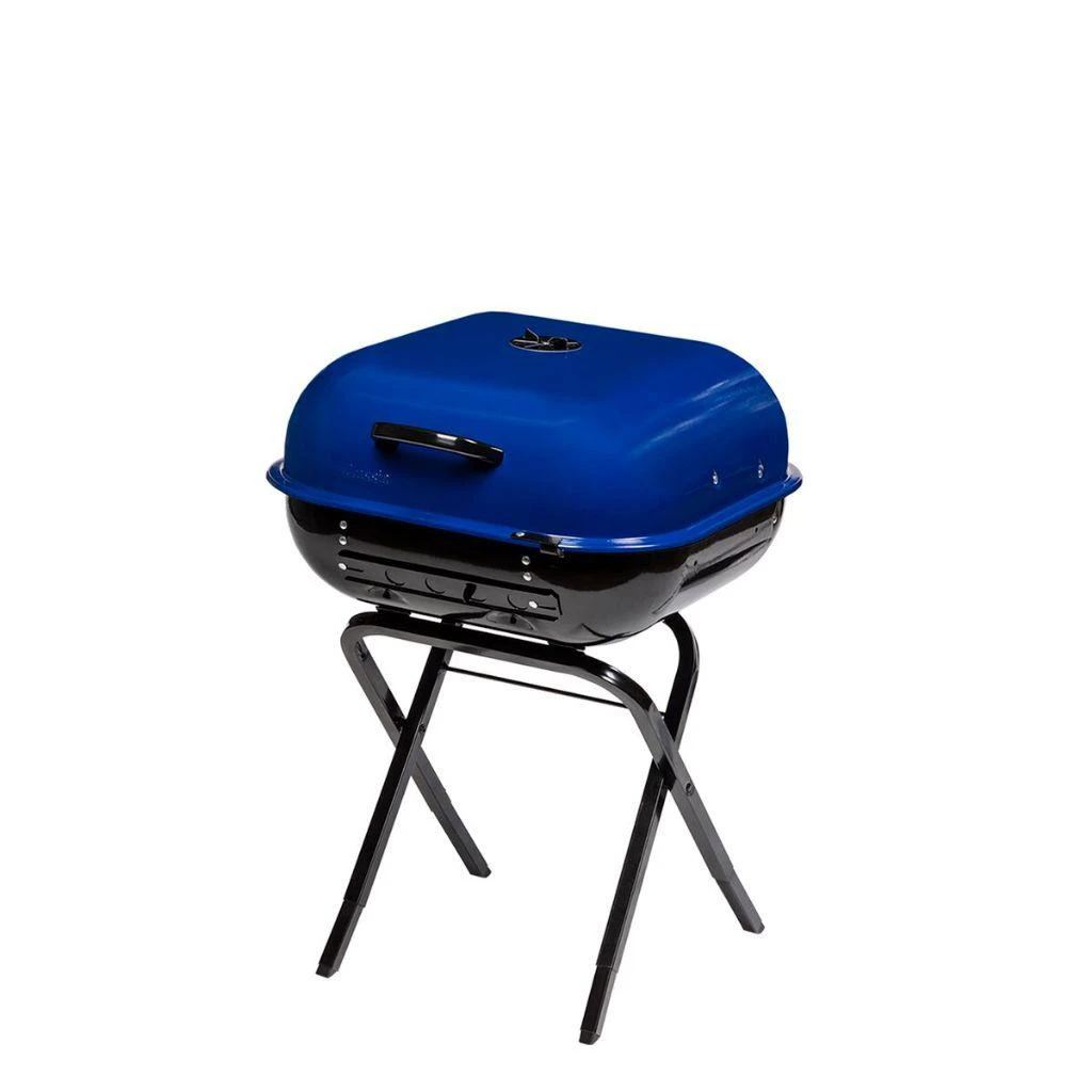 Have a barbecue party in the park with this Walk-A-Bout 2.0 Charcoal Grill. Its chrome-plated steel cooking grate offers 332 Sq. In. of cooking area to evenly distribute heat while preventing flare-ups while grilling burgers, hot dogs, pork chops, chicken and fish. The stay-cool hood handle helps prevent burns while grilling, and the hanging hook conveniently allows you to keep cooking utensils within reach. Retractable legs allow for easy transport and storage, so hauling it to the pool or park is hassle-free, and the Ocean Blue lid brings a stylish element no matter where you find yourself grilling. The adjustable hood and bowl vent offers greater temperature control, and the easy-clean ash removal system allows for fast, mess-free cleanup. This grill is already completely pre-assembled so you can start grilling immediately.
