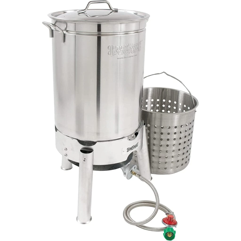 Boil or Steam shrimp, crabs, lobster, vegetables, and peanuts with this Stainless steel outdoor cooker kit. Ideal for Backyard, Lake House, Beach, Camping, Tailgating, or Festivals.