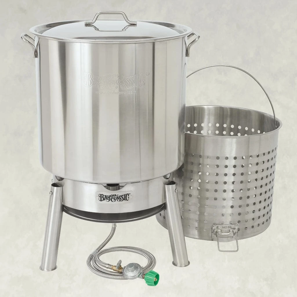 Enjoy the heart & soul of Cajun country with a Bayou Classic® boil & steam kit. This stainless 82-qt Bayou boiler feeds a crowd at backyard events, Camps, parks, RV’s & much more. Use for homebrew or Boiling crawfish, seafood, peanuts, corn, gumbo, & low country boil. Also steam clams, Shrimp, lobster & vegetables, along with canning & so much more!
