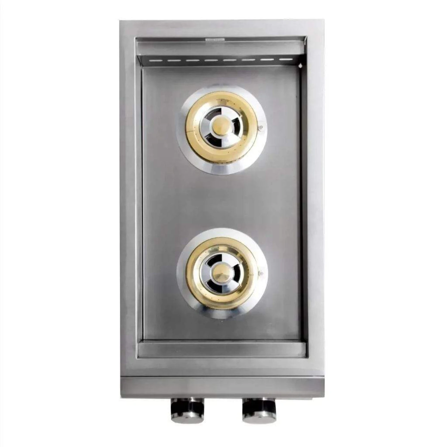 - Two heavy duty 12,000 BTU brass burners provide superior heat output
