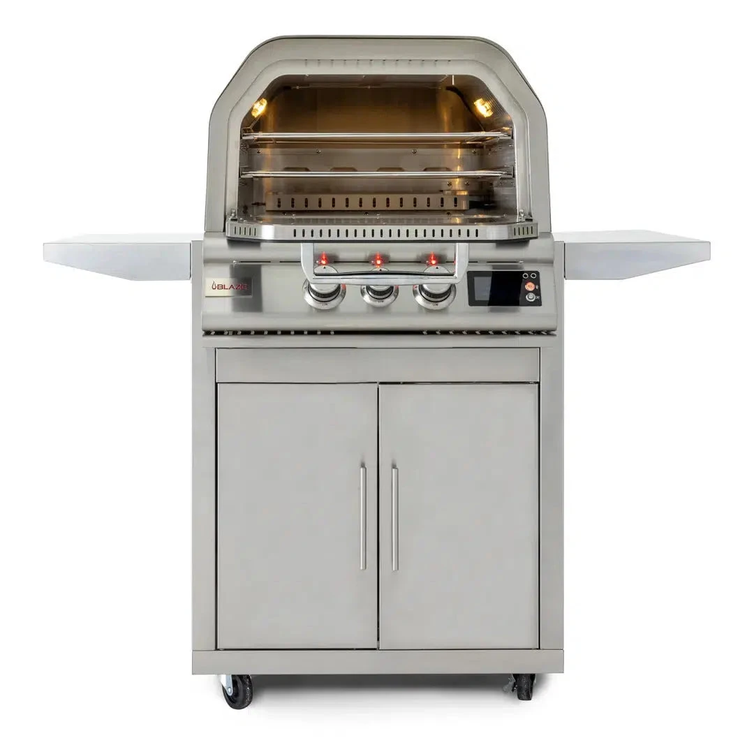 Experience the next level of outdoor cooking with the Blaze Pizza Oven. Far more than your average pizza oven, the Blaze Pizza Oven is a top-of-the-line product destined to make your backyard the destination for deep-dish, flatbread, or any other style of pizza. But the versatility doesn’t stop there — not when your pizza oven can also cook up dishes like a sumptuous rack of lamb, mouth-watering steak, or whatever your heart desires, thanks to a vertical rotisserie rod and double cooking racks. Add two digital meat probes that ensure perfection with each cook, and you’ll see that this powerful (and sleek) outdoor oven can truly do it all.