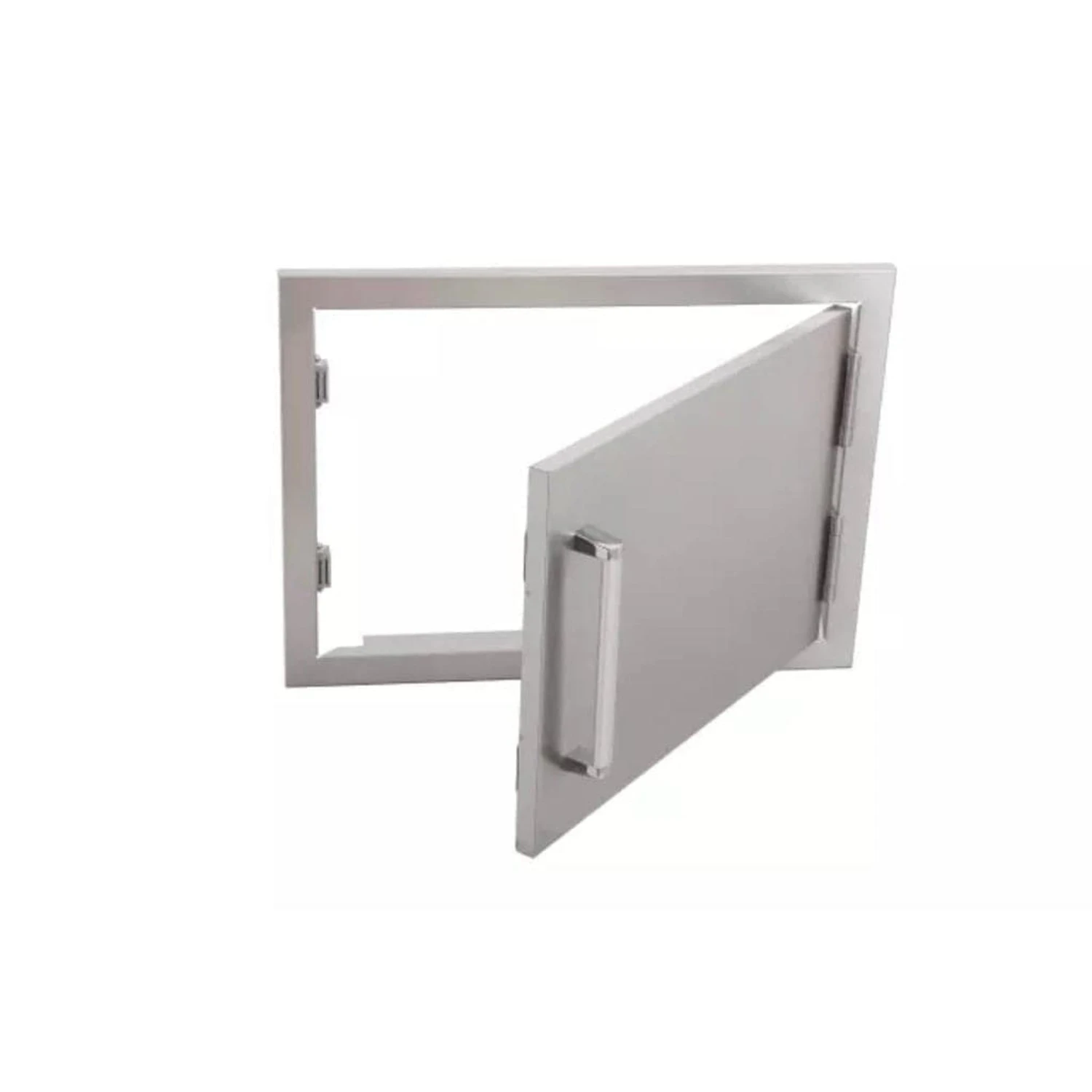 This 20.25 x 16.5 vertical door is constructed from 304 stainless steel, has masonry edges, heavy-duty hinges & handle.