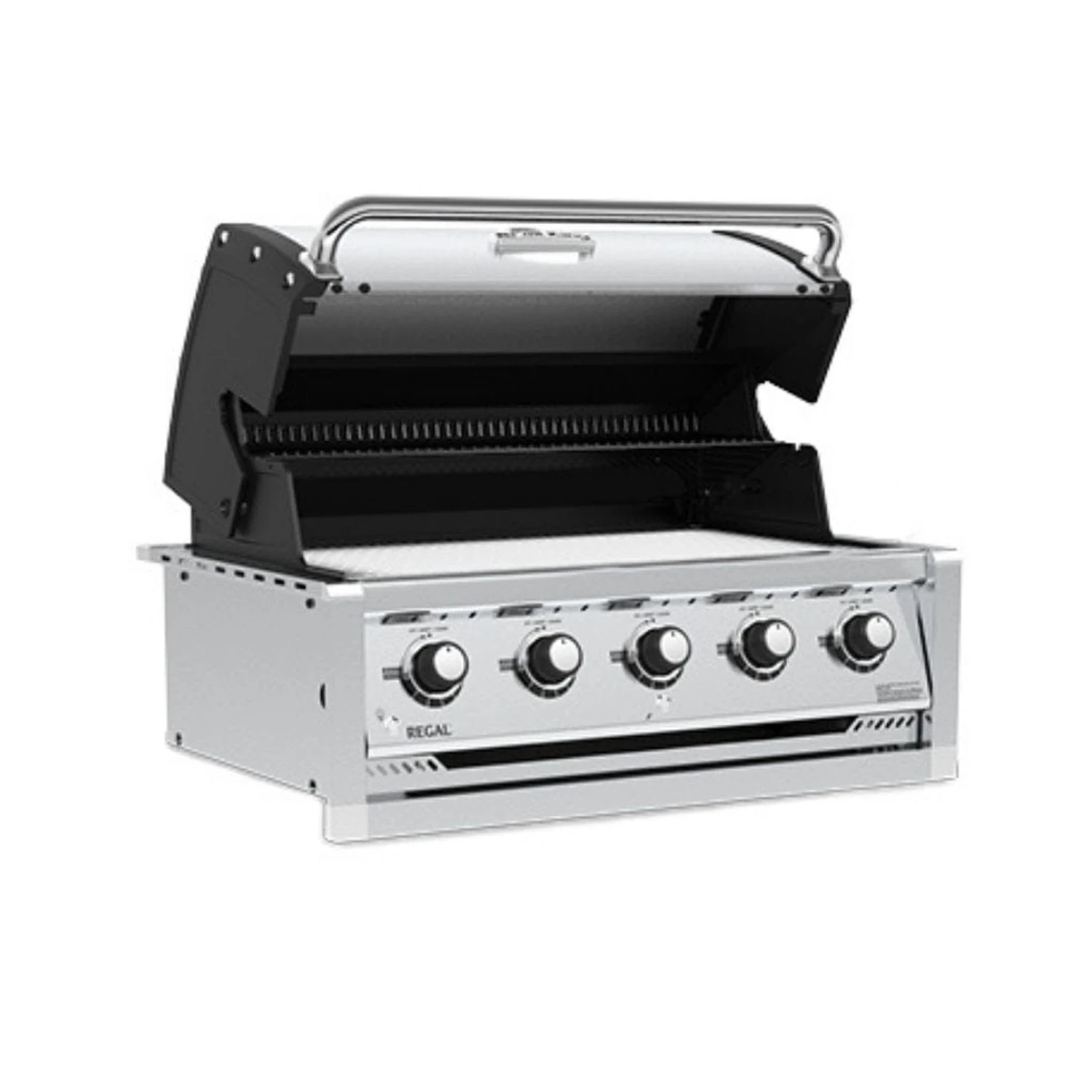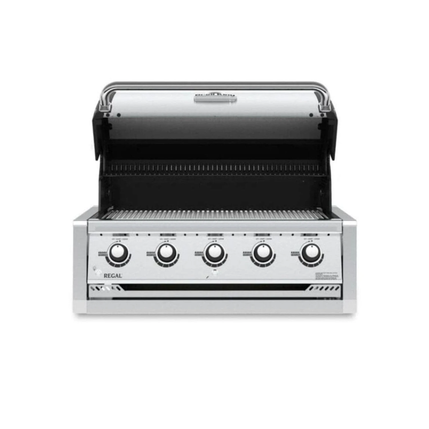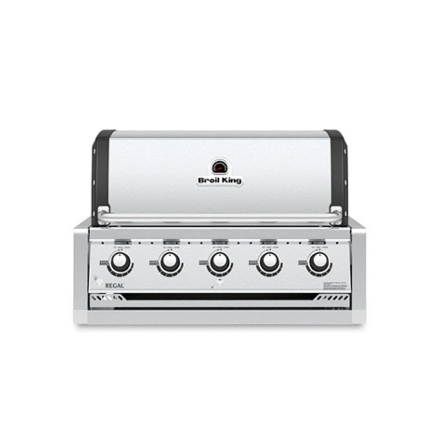 The Broil King® Regal™ S 520 Built-In features 625 sq. in of primary cooking surface and includes 5 stainless steel Dual-Tube™ burners, solid stainless steel 9mm rod cooking grids, stainless steel warming rack, stainless steel Flav-R-Wave™ cooking system, electronic igniter, and stainless steel ignition switch.
