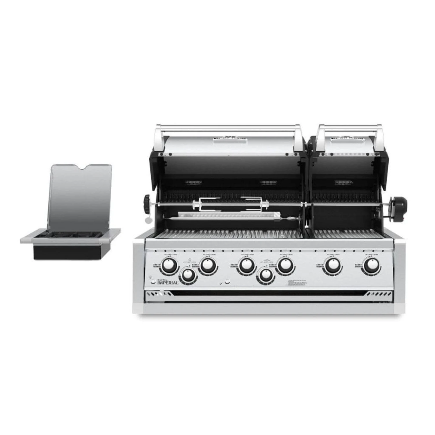 The Broil King® Imperial™ S 690 Built-In features two totally independent ovens with a total of 750 sq. in. of primary cooking surface and includes 6 stainless steel Dual-TubeTM burners, 6 professional cast stainless steel cooking grids, a warming rack, stainless steel Flav-R-Wave™ cooking system, and two electronic igniters, oven lights, illuminated control knobs and stainless steel ignition switch.