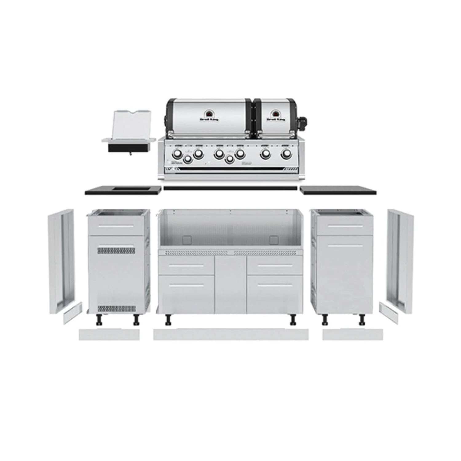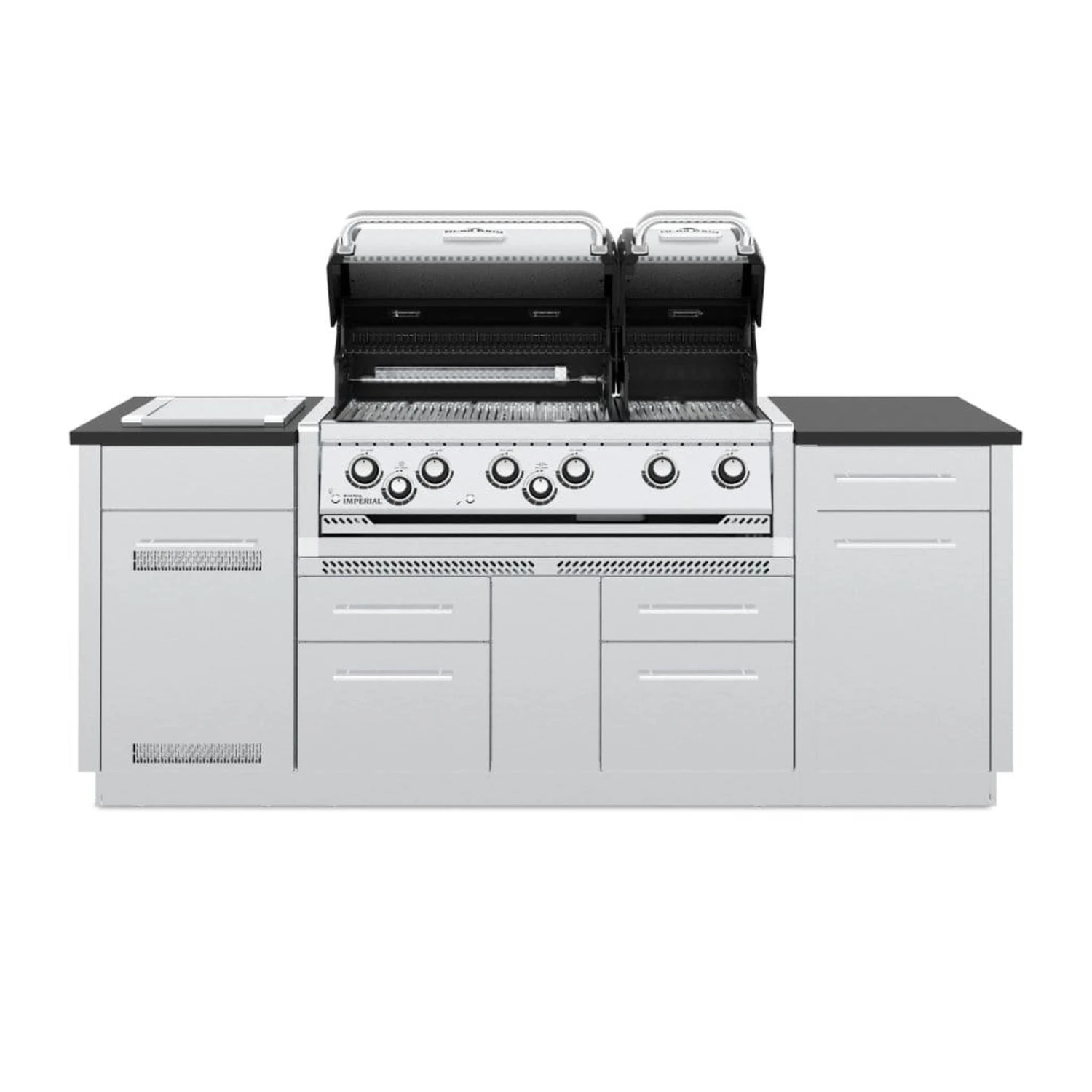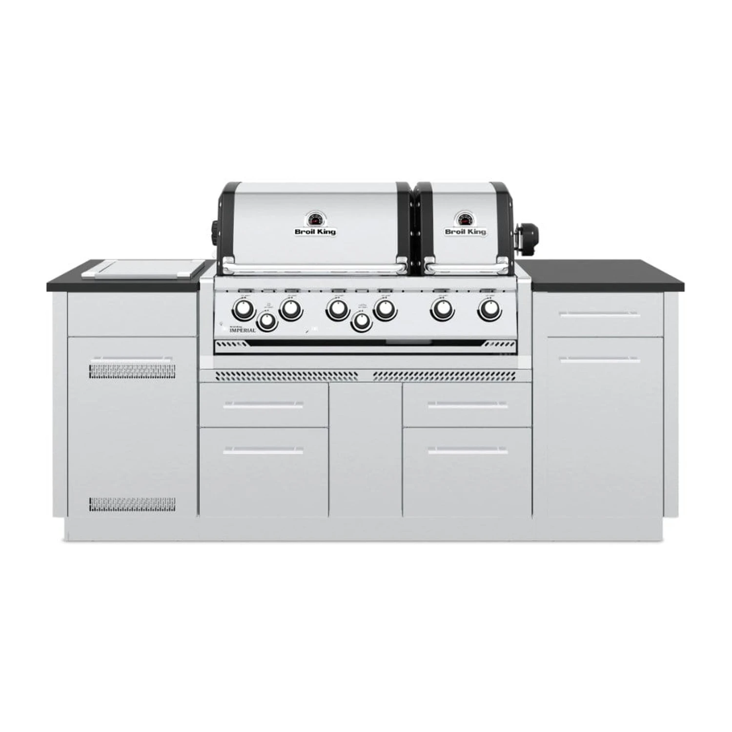 The Broil King® Imperial™ S 690i features two totally independent ovens with a total of 750 sq. in. of primary cooking surface and includes 6 stainless steel Dual-Tube™ burners, built-in oven lights, illuminated control knobs, 6 professional cast stainless steel cooking grids, stainless steel warming rack, stainless steel Flav-R-Wave™ cooking system, and electronic ignition. The S 690i features 304 stainless steel utility cabinet drawers with a tank holder (LP) and granite countertop.