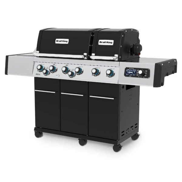 The Regal™ QS 690 Pro IR with iQue™ Technology features two totally independent ovens with a total of 750 sq. in. of cooking space including two stainless steel warming racks, 2 wide solid 9 mm stainless steel cooking grates, 2 narrow solid 9 mm stainless steel cooking grates, stainless steel Flav-R-Wave™ cooking system, 6 stainless steel Dual-Tube™ burners, stainless steel side shelves, an enclosed cabinet base and built-in control knob lights.