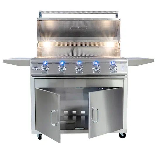 The 40-Inch Buck Grill is the perfect size grill for the entertainer. 70,000 BTUs gives you the power of intense searing heat when you need it. Precision controlled valves brass valves cools the temperature down when you need to cook low and slow. All five cast stainless steel burners feature Flame Thrower igniters that light quickly and efficiently every time. Robust, stainless steel flame tamers evenly distribute the heat and reduce flare-ups. Buck Grills feature stainless steel construction that will last a lifetime. Buck Grill – We Know Fire.