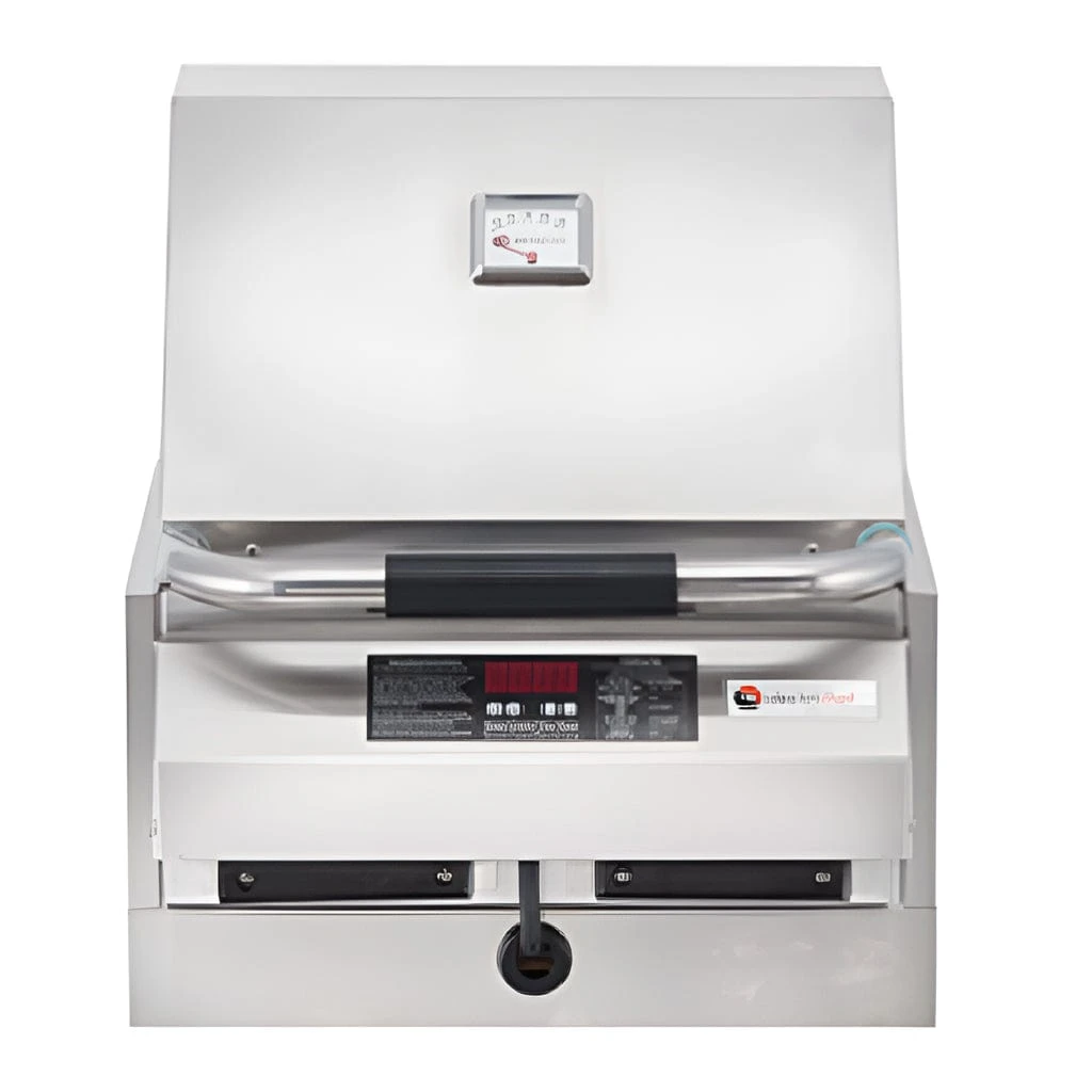 Topaz 16” flameless built-in model has approximately the same grilling area as typical gas and charcoal grills. It features a commercial design and industrial-strength stainless steel construction. Digital temperature controls and even heating let you barbecue with masterful precision. Easy-to-remove grids and drip pans are a favorite with the clean-up crew.Â