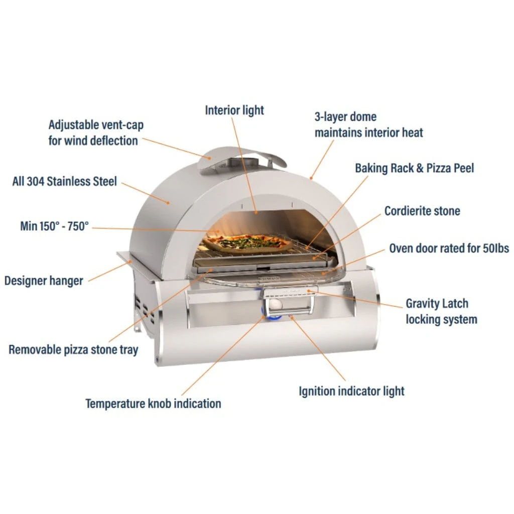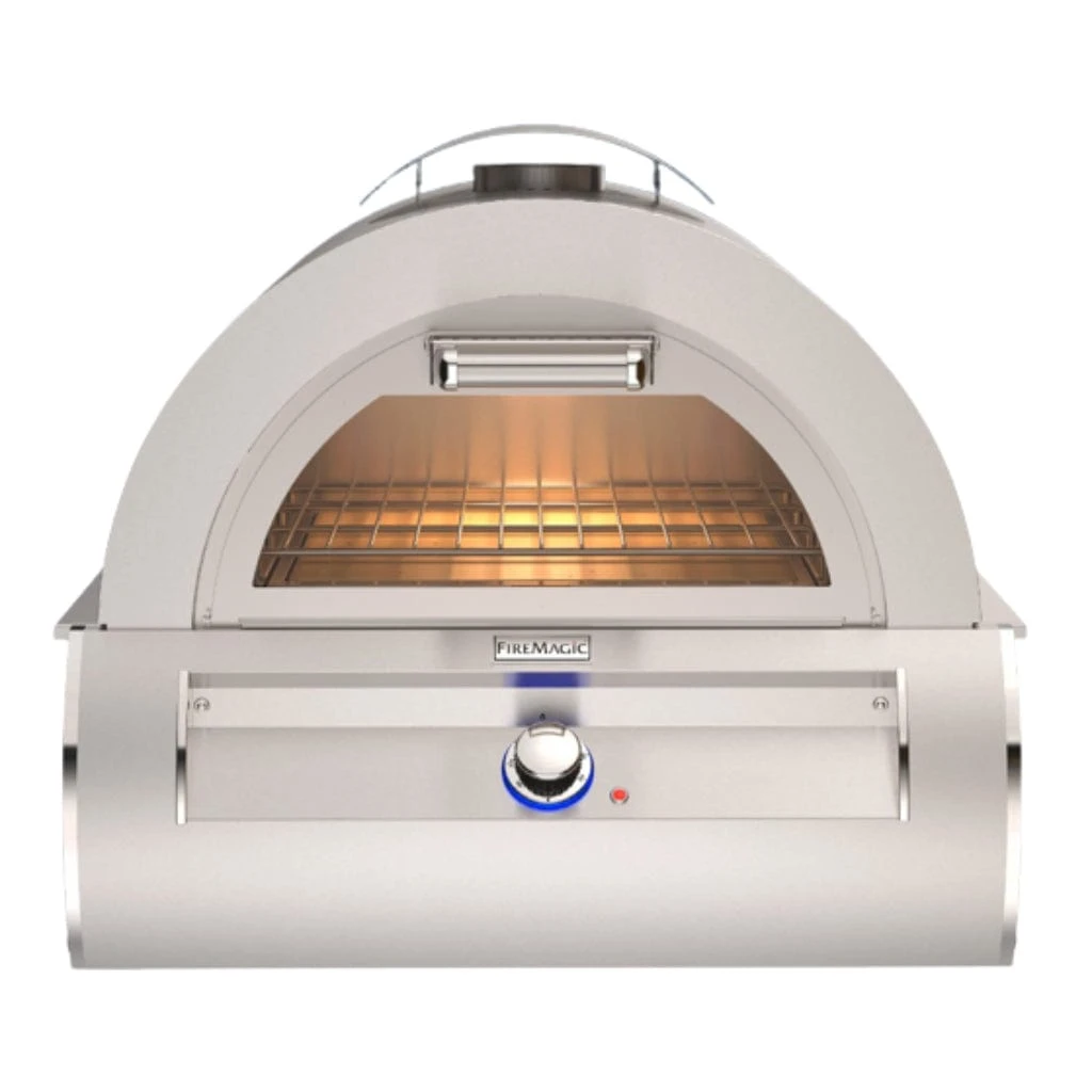 The handsome, new Fire Magic model 5600 built-in Outdoor Pizza Oven isn’t just for artisan-style pizza…you can bake, broil, and more with thermostatic control up to 750°F. Truly a complete outdoor oven, the Pizza Oven boasts a ceramic glass viewing window in the easy-access oven door to the pizza stone or baking rack. Designed to complement the Fire Magic suite of outdoor kitchen products.