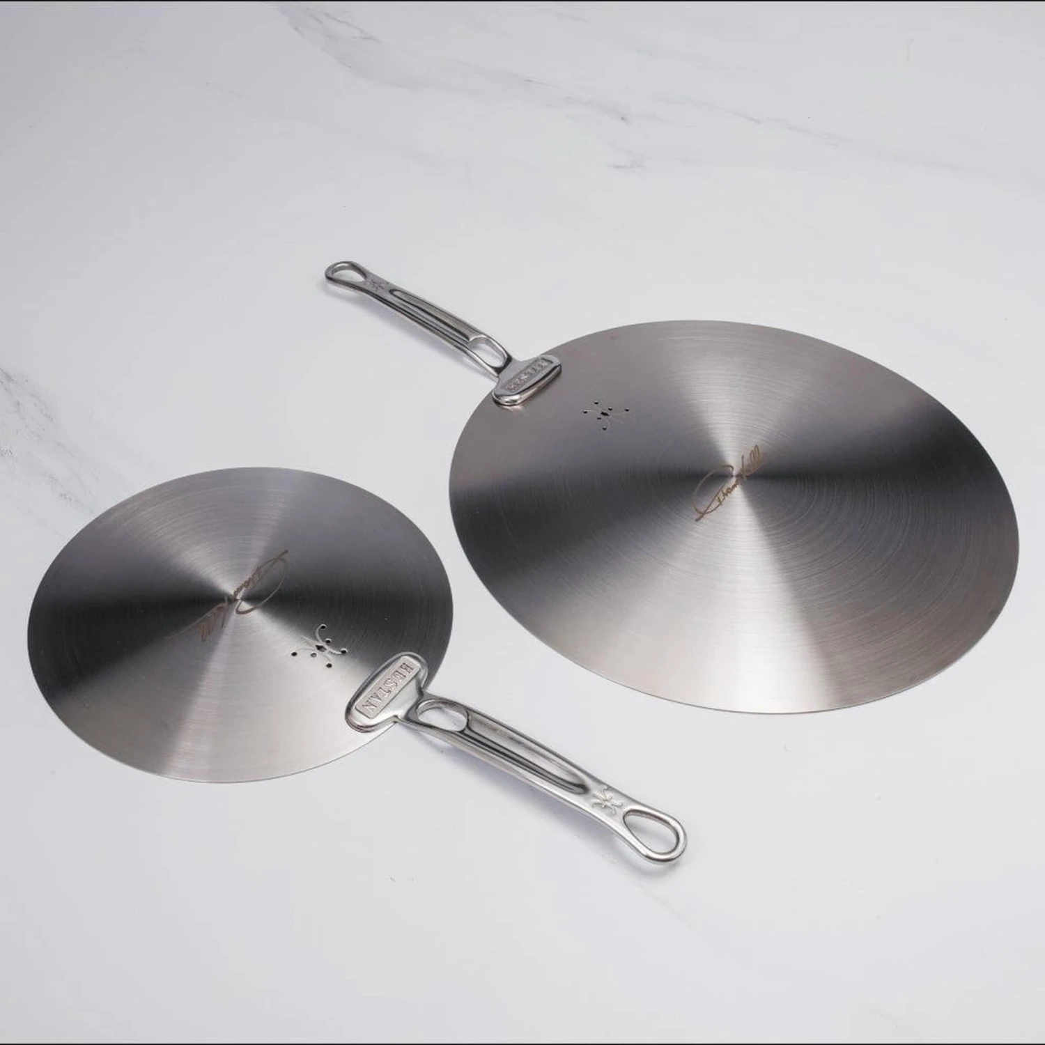 - SPACE SAVING – Flat disk design is easy to store and fits multiple pan sizes including an 8.5″ sauté pan, 2.5qt saucier, and sauce pots (up to 3 quarts)