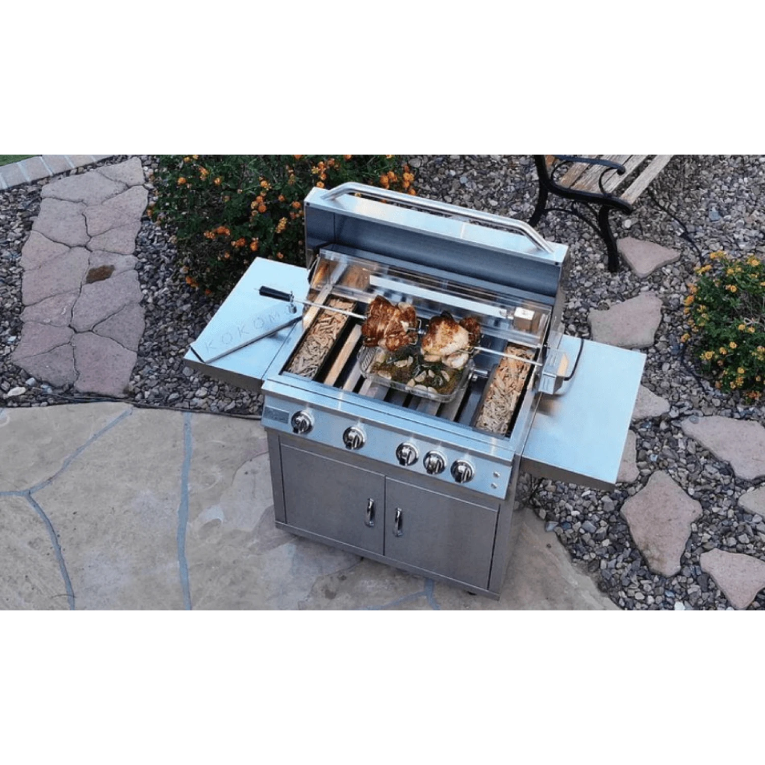 Entertain and barbecue grill with family and friends at your outdoor kitchen area. Kokomo Professional 4 Burner 32″ Freestanding KO-BAK Series BBQ grill has complete control with 4 independent heat controls for indirect cooking and 1 control knob for the Infrared Rotisserie back burner.