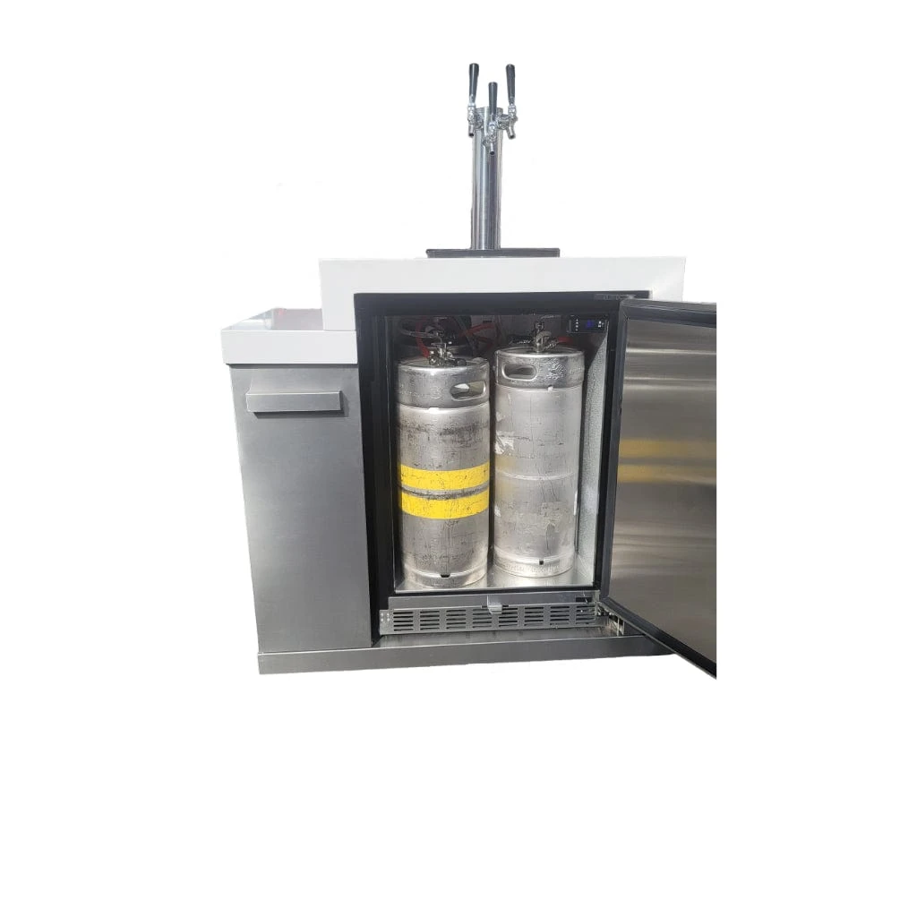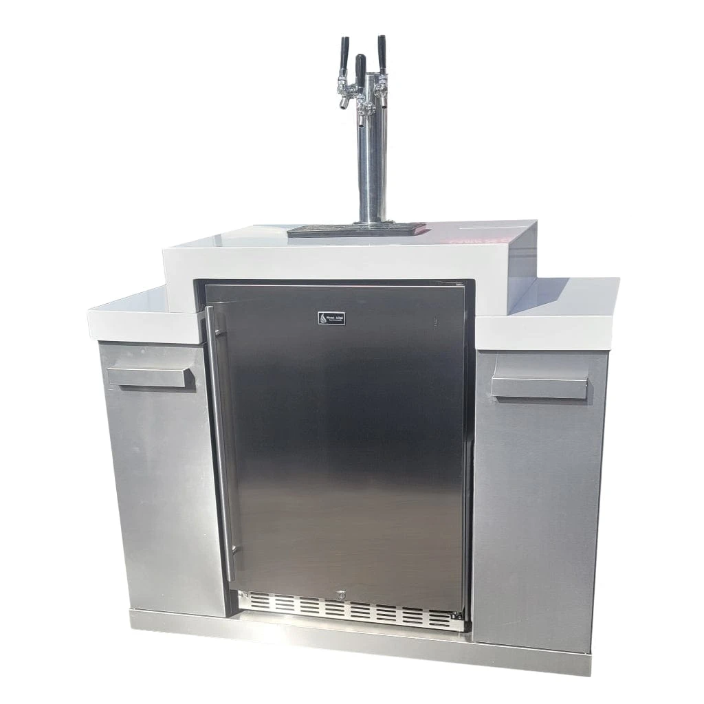 Mont Alpi Keg Module comes with three taps. The fridge holds 3 barrels and is outdoor rated. The unit is stopped with the white granite and works well as a module with any stainless steel Mont Alpi Island or as a standalone unit.