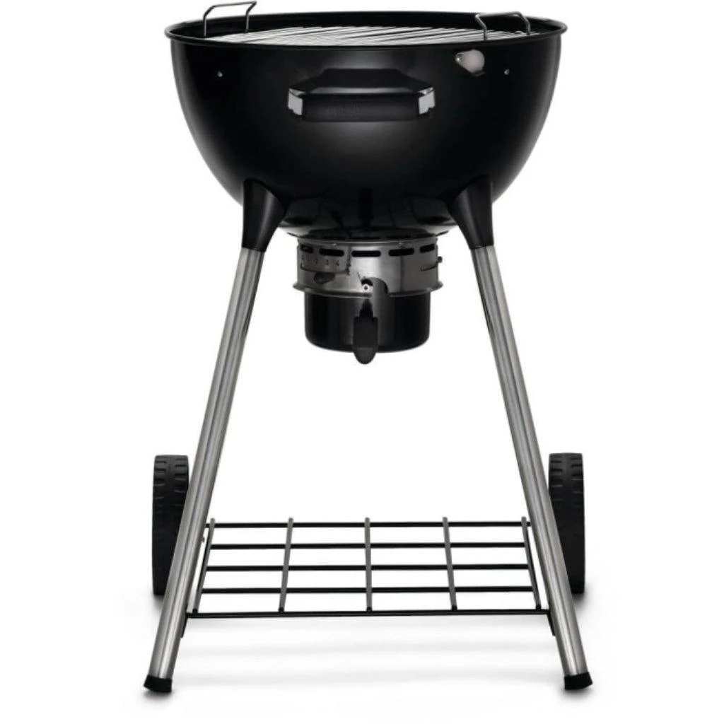 Napoleon’s compact and agile Charcoal Kettle Grill, the NK18K-LEG, is an 18-inch kettle that is ideal for any charcoal enthusiast. Grill and slow roast with ease, or smoke by including your favorite wood chips and chunks. When charcoal grilling, being able to control heat through airflow is essential. The adjustable air vents make it easy to manage airflow for precise temperature control, including top venting that is protected from the elements. The Vortex heat management system improves convection within the grill for better searing and smoking as well as improved fuel efficiency. Stainless steel grids heat quickly and need little maintenance, they are hinged to allow easy addition of extra charcoal, refilling water pans, and addition of wood for smoking. The integrated temperature gauge helps you maintain the perfect temperature while you grill at a comfortable height, thanks to improved leg joints that provide rock-solid stability and an elevated grilling surface for your barbecue needs.