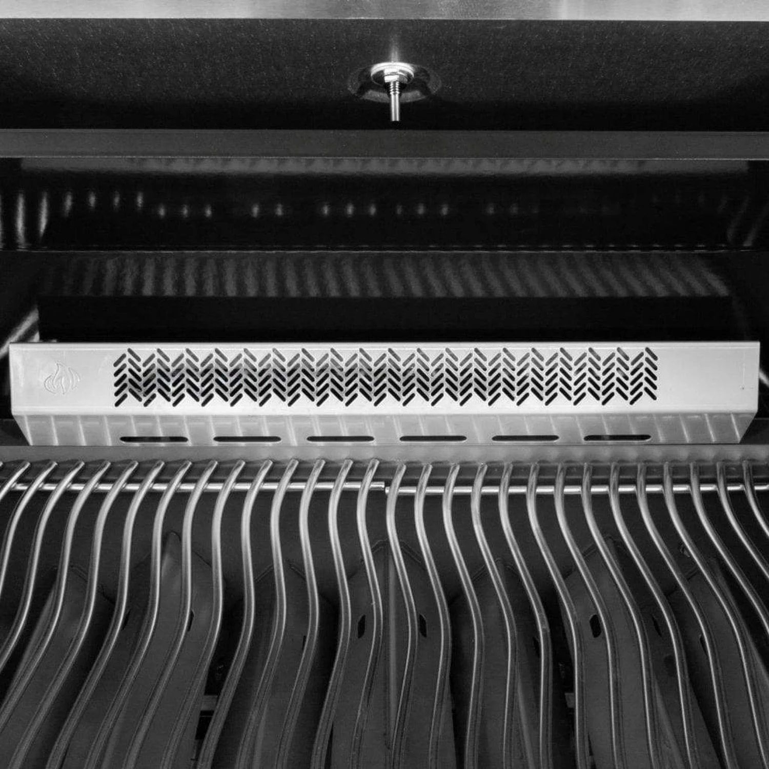 DUAL-LEVEL STAINLESS STEEL SEAR PLATESThe staggered set up creates even heat distribution and protects the burners. |