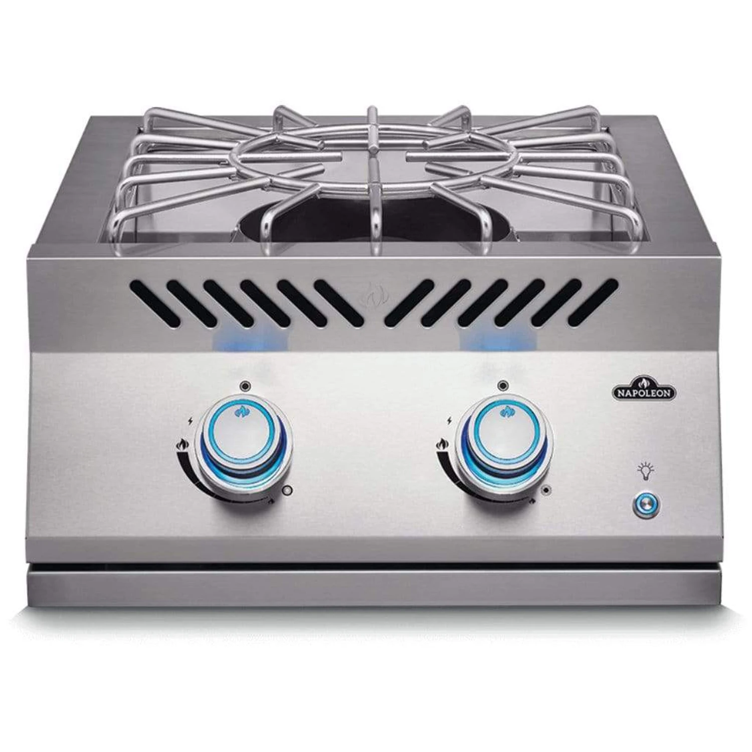The 18-inch, two-stage, Power Burner for the Built-in 700 Series is a chef’s dream. Ultimate temperature control with a high and low setting which makes cooking huge meals, like a seafood boil, or small items, like a fresh sauce, a total breeze. This power burner is ideal for The NIGHT LIGHTâ„¢ Control Knobs with SafetyGlow that makes grilling after dark a breeze. Never accidentally leave a burner on, the lights change from cool blue to red when on. The no-fail, battery-free ignition lights immediately with a unique jet of flame. The two-piece stainless steel cooking grids hold large pots and the removable centre ring perfectly nests a wok pan. Include an additional and convenient cooking area to your custom outdoor kitchen by including this drop-in power burner. The power supply kit stain is required for all Built-in 700 Series burners being used in an application without a Built-in 700 Series Built-in Grill in order to supply power for the NIGHT LIGHTâ„¢ control knobs.