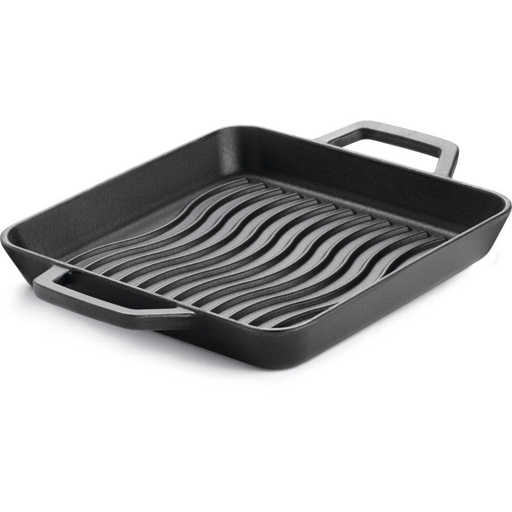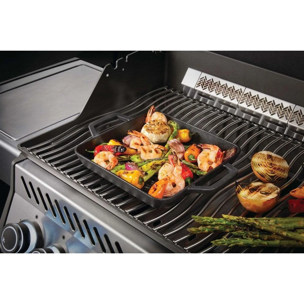 This robust 25×25 cm (10×10 inch) sized Griddle Pan is ideal for the perfect sear on your favorite meat and vegetables whether you are indoors or out. The enameled cast iron surface retains and distributes heat evenly while providing an easy-to-maintain, nonstick surface. The comfortable handles on both sides make moving, adjusting, and carrying this pan a joy. Use this enameled cast iron griddle pan on the stovetop, gas top, your barbecue’s side burner, infrared sear station side burner, and even in the barbecue and oven! Get your iconic sear marks any time of year, inside or outside with this enameled cast iron griddle pan accessory. Clever, multifunctional, and easy to maintain, every kitchen benefits from the addition of a Napoleon barbecue accessory. Our accessories provide you with the essentials to create delicious grilled food and then some to enhance your cooking arsenal with a wide variety of creative additions to broaden your culinary horizons.