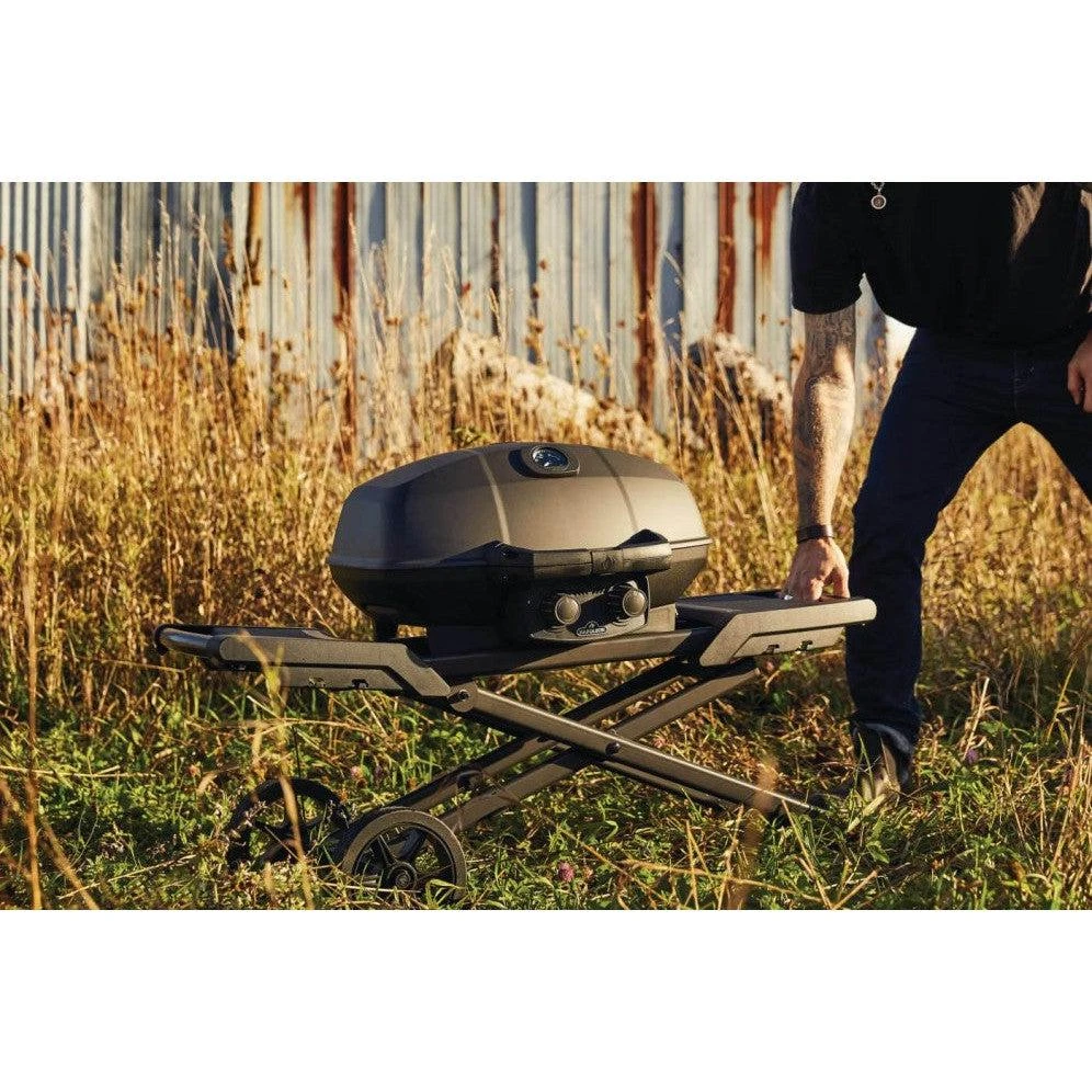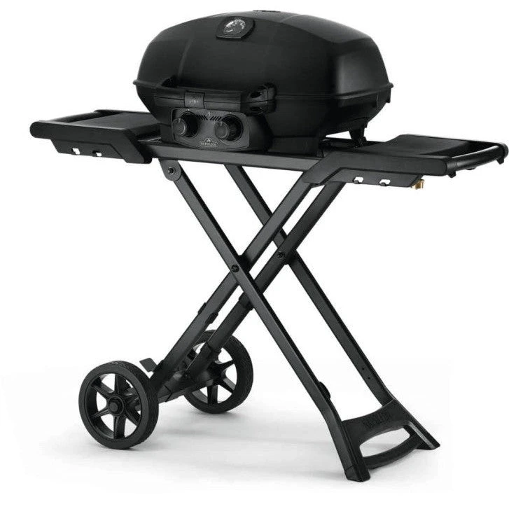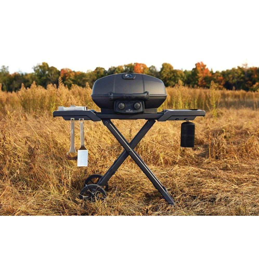 Portable grilling like no other, the Phantom TravelQâ„¢ PRO285 Portable Propane Gas Grill with scissor cart is a luxurious matte black and hides many secrets. From the top of the lid to the cart, this portable gas barbecue is silky matte black. The edgy Phantom TravelQâ„¢ Portable Gas Grill features a high top lid and two stainless steel burners to take portable grilling to the gourmet level. Barbecue up to 20 hamburgers or roast succulent turkeys, whole chickens, and even prime rib. The included warming rack with an innovative hinge design allows the rack to flip back when not in use to provide full access to the main cooking grids. It’s perfect for warming or providing additional cooking area. A nimble, matte black, folding cart features all-terrain wheels, easy setup, compact storage, and propane tank straps. The deep and dark Phantom TravelQâ„¢ PRO285 Portable Propane Gas Grill is more than just a look. It’s a lifestyle.