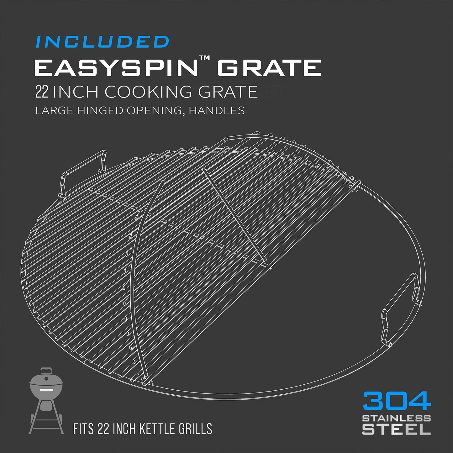 - 304 Stainless Steel, 22″ EasySpin™ Grill Grate offers superior quality and cooking capability