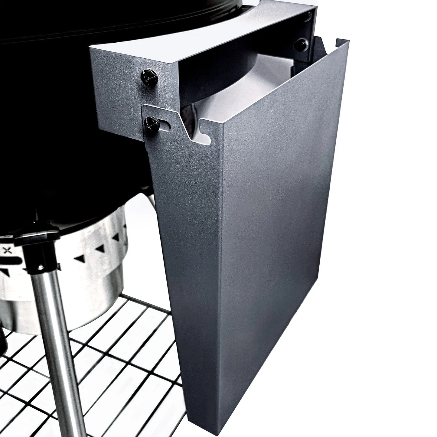 - Side shelf rated for 20 pounds of brisket or pulled pork