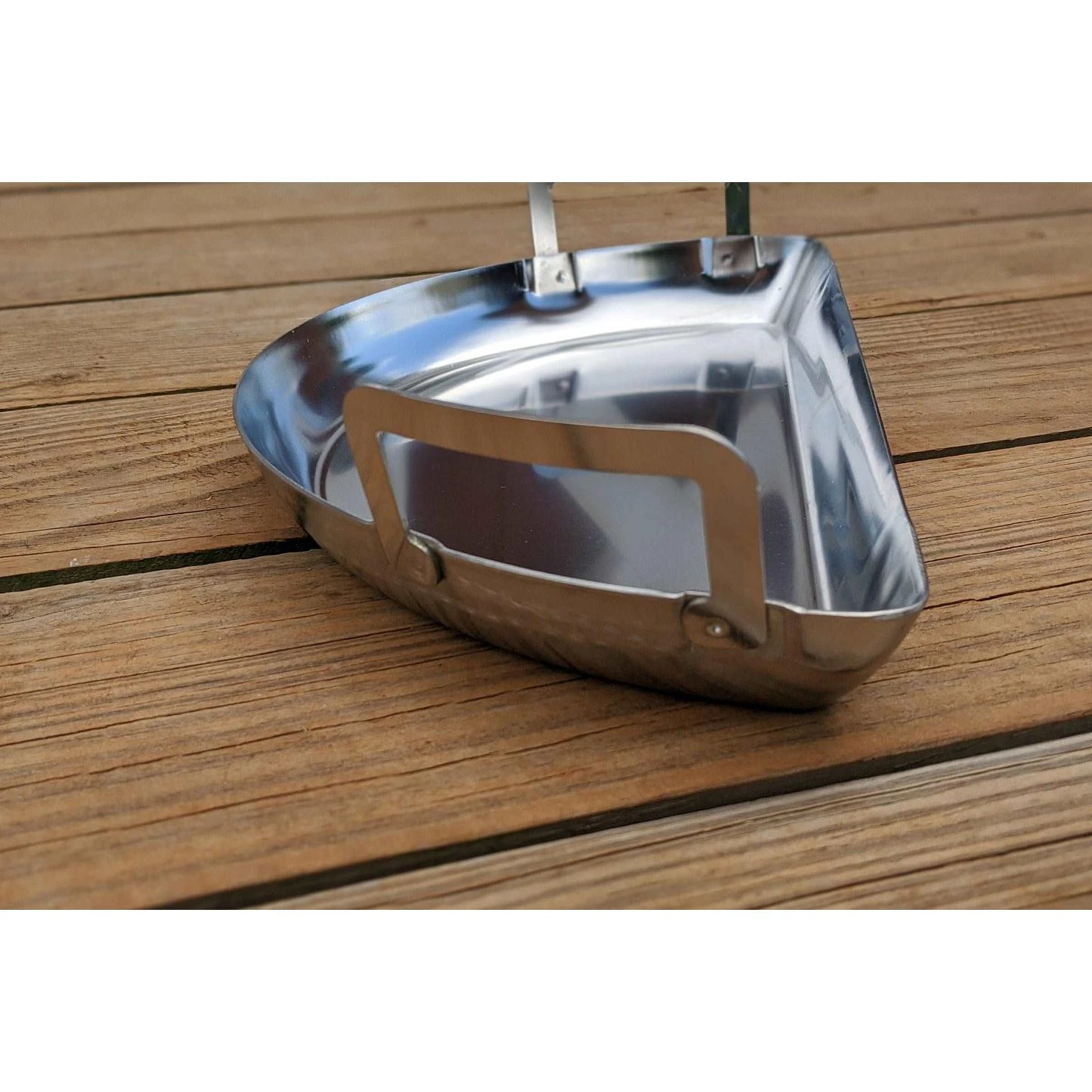 This little pan will fit in your 18″ kettle alongside the charcoal basket or you can use it in a bigger grill for a small drip pan, or even cook some sides on it!