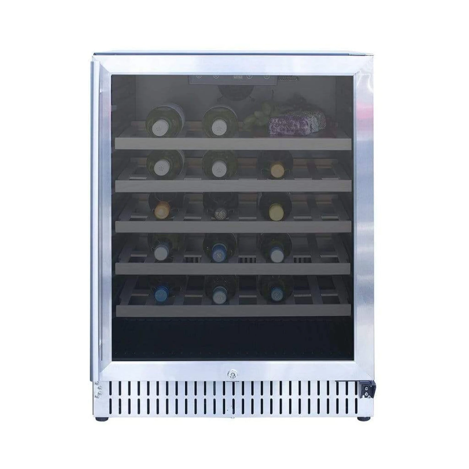 Bring modern ease and luxury to your outdoor kitchen with the Summerset UL Deluxe Wine Cooler. Built to last and impress your guests, this wine cooler features all #304 stainless steel construction for durability, UL-Rated for outdoor use, adjustable legs for leveling for various installations, front venting, and limited lifetime warranty. With a stout 5.3 cubic feet capacity, the included shelving can store up to 54 bottles chilled and perfect for that breathtaking sunset or needed time of refreshment. The elegant tinted glass looks amazing adding a high-end look to your outdoor space, and it is functional keeping the temperature regulated. The locking stainless steel door, sealed back, and temperature control keeps your cold storage energy efficient, secure from pests or children, and safe from the elements. Keep the party outside and always have your favorite wine at your fingertips with Summerset UL Deluxe Wine Cooler.