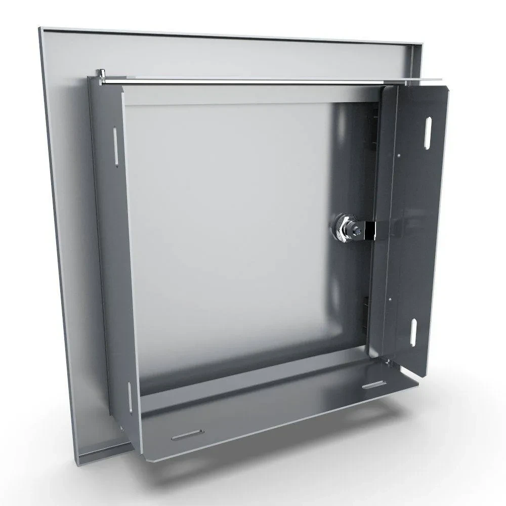 The Sunstone Signature Series Beveled Style 12″ x 12″ Access Door is your perfect solution for Outdoor Plumbing, Gas, Electrical, or Safety Access great for multiple installation types like Dry-Wall Board, Brick, Veneer Stone or Masonry Stacked Brick. In addition, this door is great for accessing the Bottom Vent of a Ceramic Grill and features a Turn-Latch which can be optionally replaced for a Locking Latch keeping internal components safe. The door is specially designed, so it can be turned 180 degrees allowing it to be opened either Left or Right Swing.